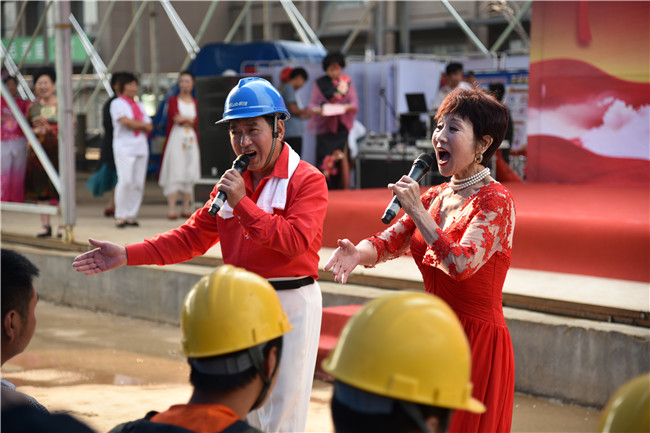 齊魯晚報張剛大篷車(chē)兵媽媽公益藝術(shù)團分團——桃花盛開(kāi)藝術(shù)團現場(chǎng)傾情助演。農民工兄弟辛苦勞作,建設美麗泉城,無(wú)數個(gè)日夜在異地他鄉艱苦奮戰,無(wú)法與家人團聚。值端午節到來(lái)之際,桃花盛開(kāi)藝術(shù)團的藝術(shù)家們來(lái)到工地現場(chǎng)慰問(wèn)演出,向農民工兄弟表達敬意,為工地現場(chǎng)百余名農民工兄弟們呈現了一場(chǎng)高質(zhì)量、高水準、精彩紛呈的文藝演出,表演形式豐富多樣,演出內容貼近生活、生動(dòng)感人,現場(chǎng)氣氛高漲、反響熱烈。