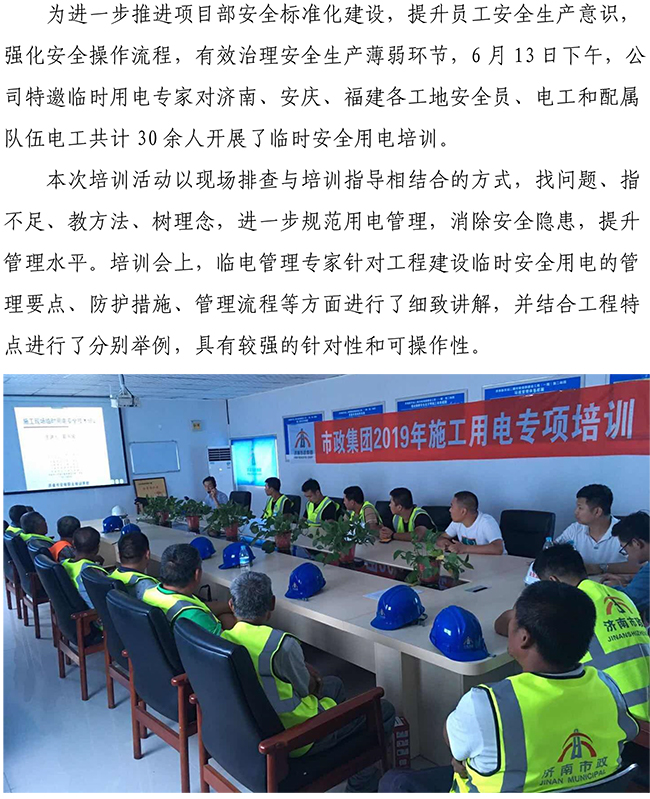 濟南市政集團組織開(kāi)展臨時(shí)用電安全培訓