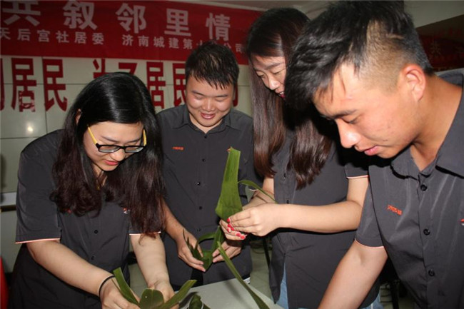 粽香鄰里。社區工作人員及居民代表,與公司團員青年和志愿者開(kāi)展活動(dòng),一起動(dòng)手包起了粽子?!棒障阍?huà)端午,共述鄰里情”的紅色條幅格外溫馨,社區活動(dòng)室中央,糯米、紅棗、粽葉、棉繩整齊擺放在一起。大家紛紛動(dòng)手,學(xué)著(zhù)阿姨和老奶奶的動(dòng)作,包起了粽子。社區汪大媽笑著(zhù)說(shuō):“包粽子,更多的是傳承著(zhù)我們民俗文化精神,我們包的不是粽子,是快樂(lè )、是祥和,是黨領(lǐng)導我們走向美好生活的幸福!”